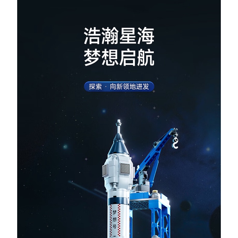 尚韵积木拼装儿童玩具男孩小颗粒中国火箭航天飞船积木模型立体拼插