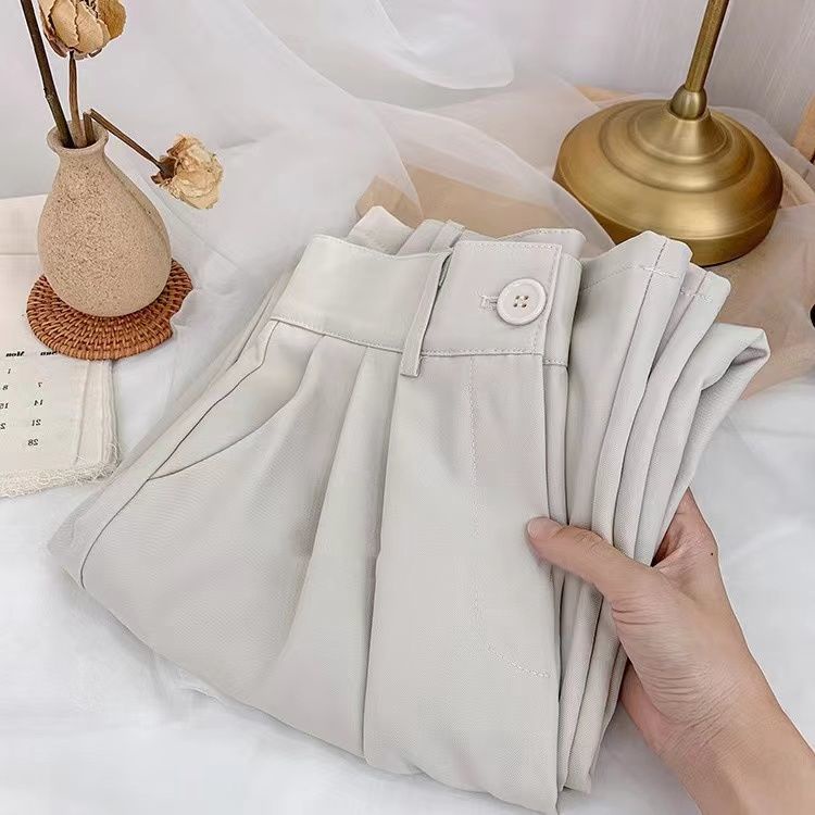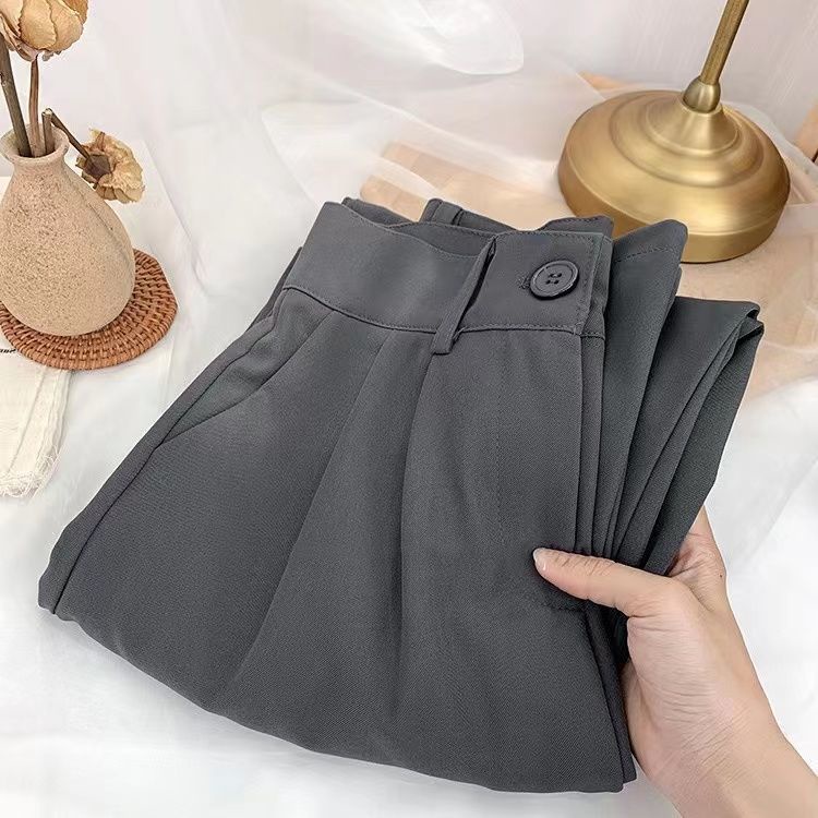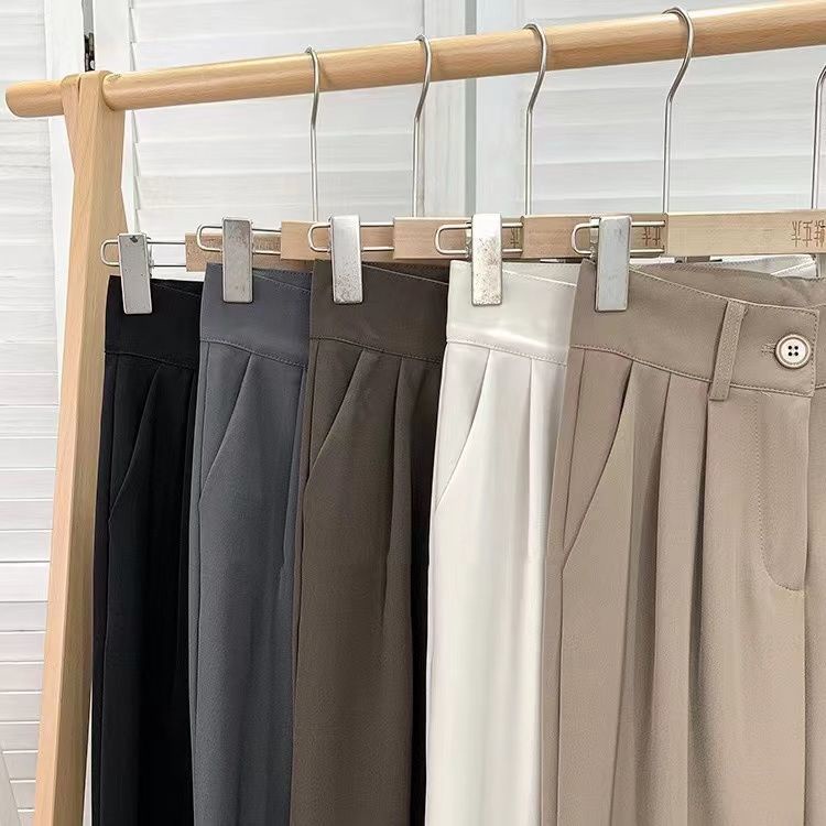 現貨 韓國百搭素色落地西裝褲女 2023春夏季新款垂墜感氣質ins高腰西裝寬褲 寬鬆顯瘦拖地加長休閒褲 正韓闊腿女生西褲