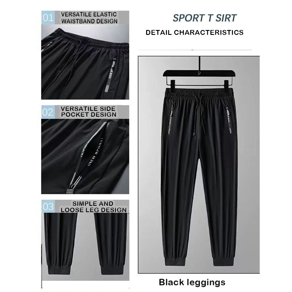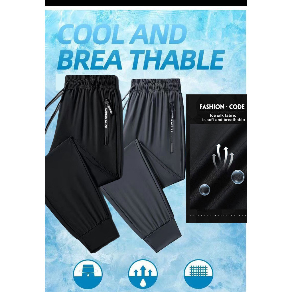 【 M-8XL 】 Plus Size Stretchable Superelastic Casual Ice Shreds Men's Thin Quick Drying Sports Pants Long Pants Men