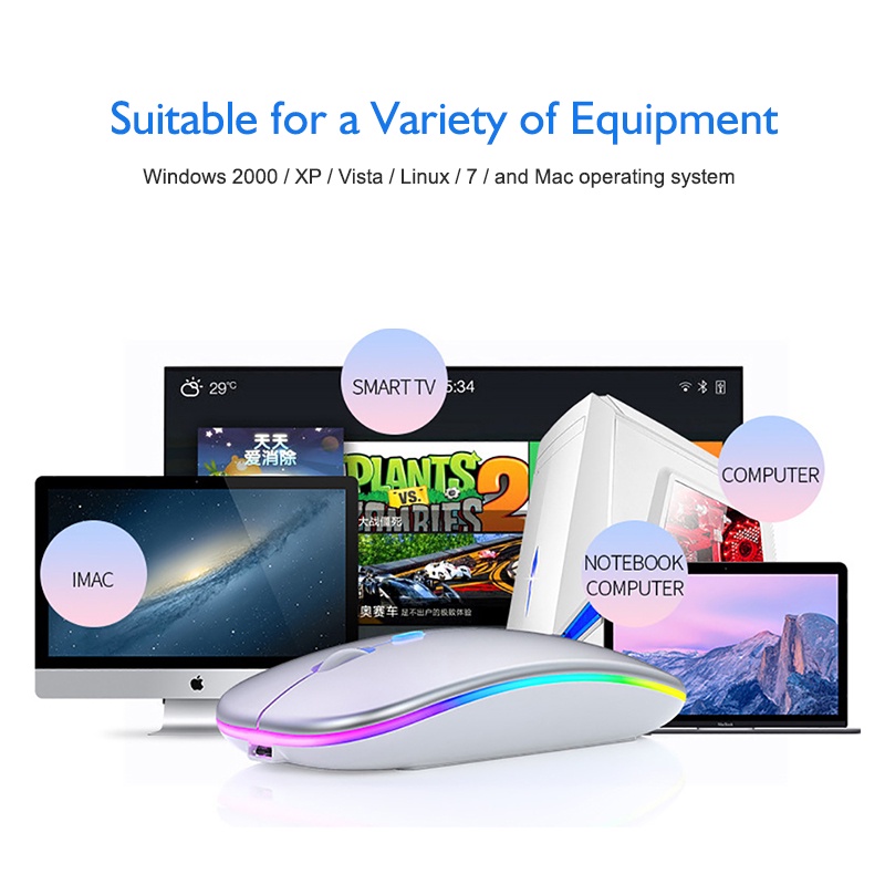 ?ready stock? Wireless Mouse 2.4Ghz Receiver Optical Adjustable Silent led usb Rechargeable for Laptop notebook 鼠标
