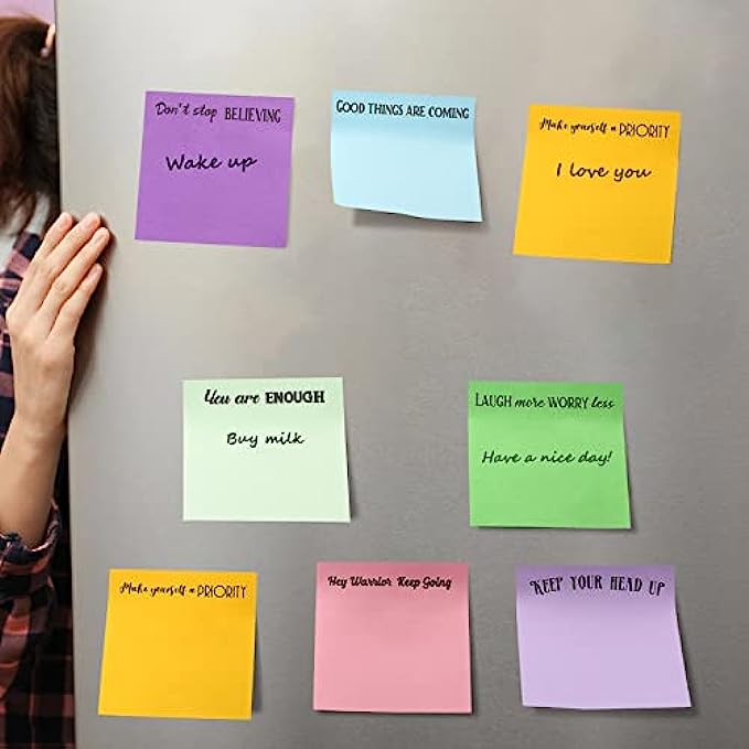 Wide applications: the colorful sticky notepads are suitable for writing messages, notes, shopping lists, schedules, to do lists, etc., which can be pasted on the desk, refrigerator, wall, door and kept in the bags, helping to remind people to do something important or trivial