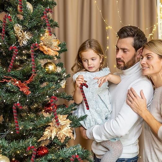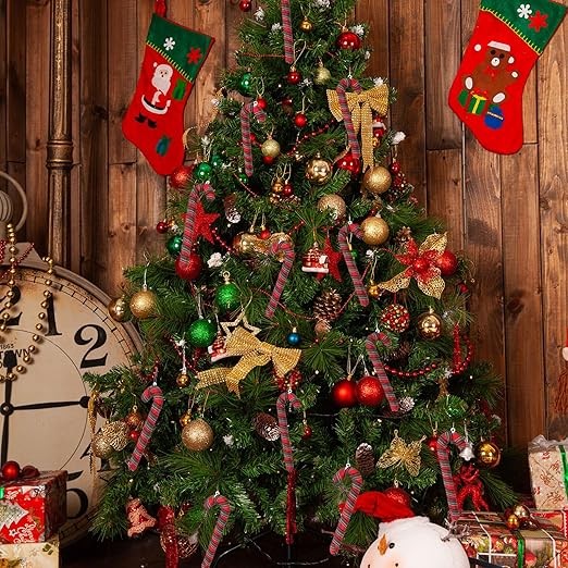 • Classic Plaid Design: the red and green plaid pattern of these candy cane ornaments is a choice for Christmas decor; This classic design instantly evokes the festive spirit, making them an ideal addition to any holiday setting; They can be applied as DIY gift packaging accents, photography props, or as eye catching hanging decorations