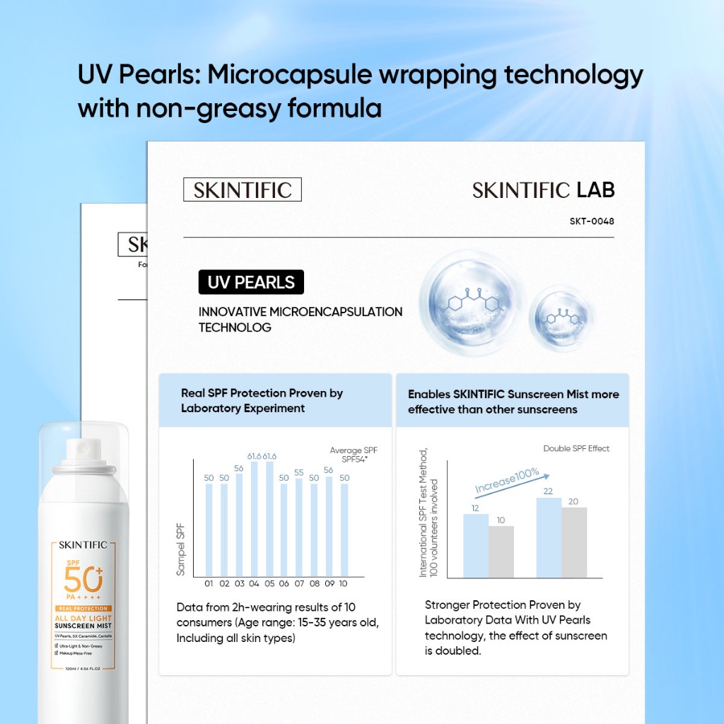 [120ml] SKINTIFIC All Day Light Sunscreen Mist SPF50 PA++++ Sunblock Spray Anti UV Face Body Spray Anti UV UVA UVB