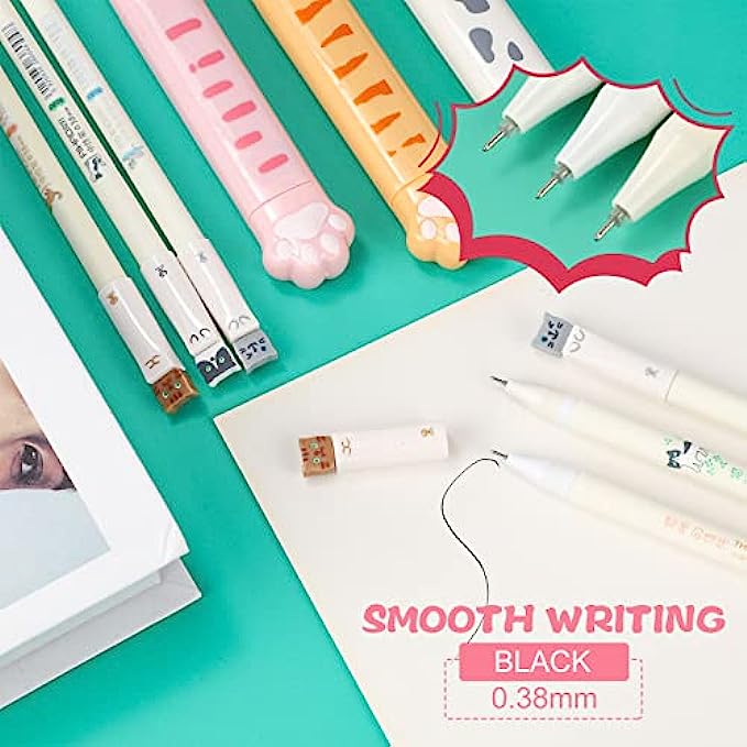 Cute cat pens: stainless 0.38 mm black ink pens are easy to replace the refills and come with cute cat pattern printed, attractive and interesting, suitable for writing, drawing, marking, painting and so on, portable and you can use them any time you need