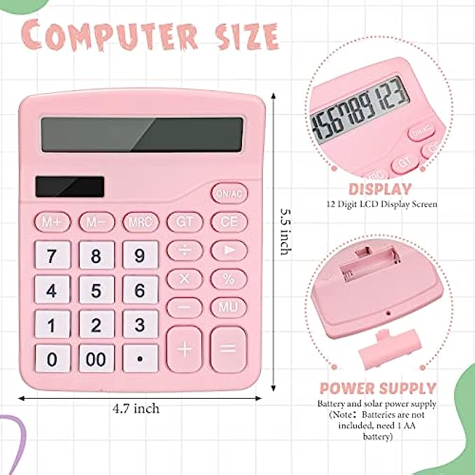 • Note for calculator: battery is not included; The calculator has two power modes, one is to use 1 AA battery, and the other is solar energy; Tip: In the solar state, the display will change according to the light intensity, if you need a good experience, it is recommended to install the battery