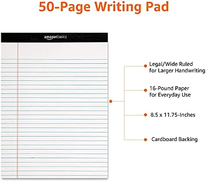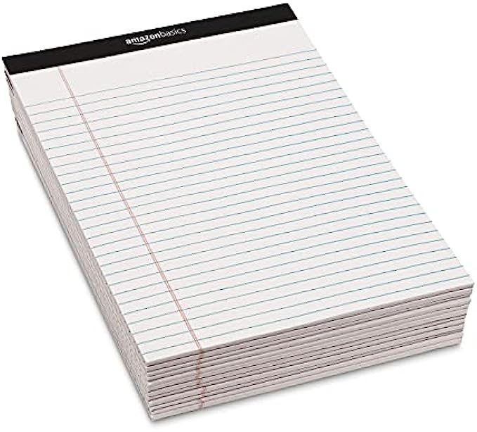 Amazon Basics 50-Sheet Legal Note Pad, Wide Ruled, 8.5 x 11.75 Inches, White - Pack of 12