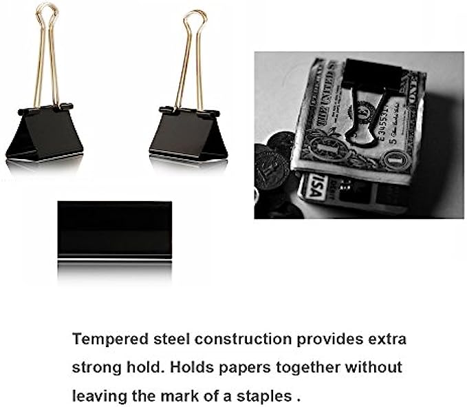 • ADVANTAGE - Spring-tight binder clip keeps files bound together preventing papers from slipping or pulling out, tempered steel construction provides extra strong hold. Holds papers together without leaving the mark of a staple
