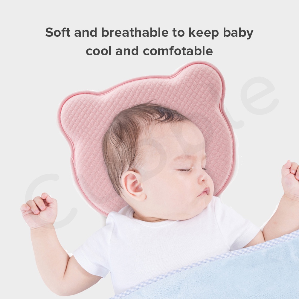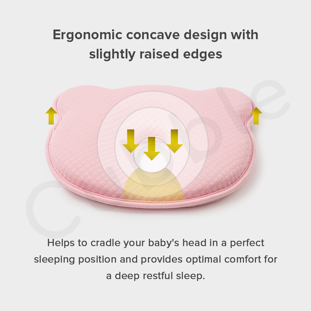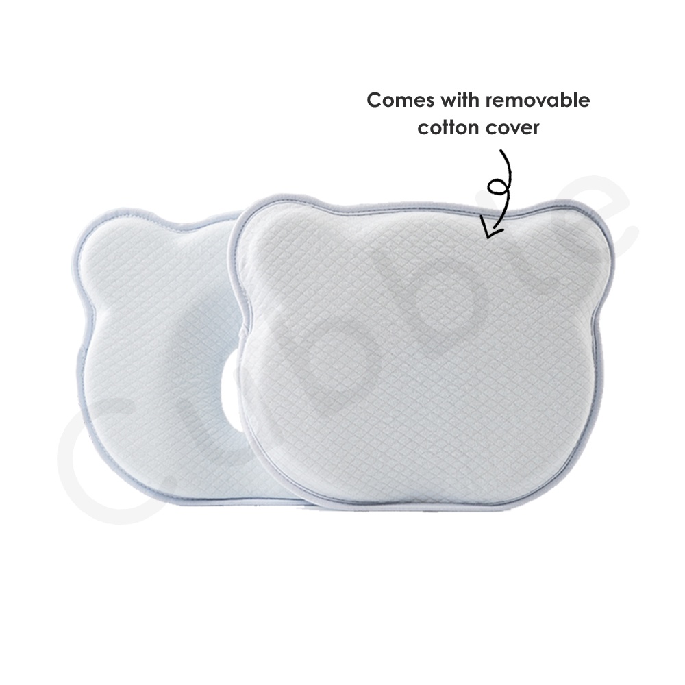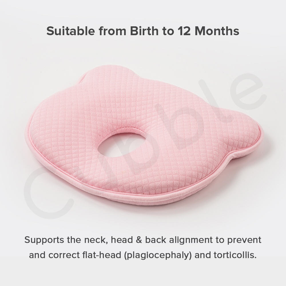 Cubble Flat Head Prevention Pillow (Organic Bamboo Memory Foam Baby Head Pillow) [Removable Cover available]