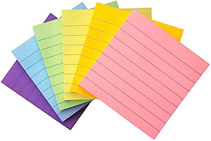 Early Buy 6 Pads Lined Sticky Notes with Lines 3x3 Self-Stick Notes 6 Pastel Color Sticky Notes, 100 Sheets/Pad