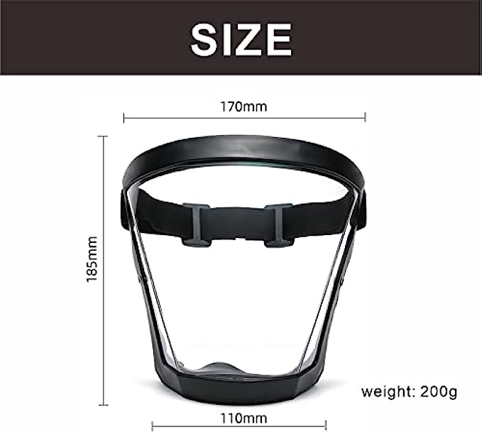 [WIDELY APPLICABLE AND PORTABLE]: This full protection shield has a wide range of uses for industry and daily life, and is easy to carry. It can be reused and cleaned. It can be cleaned with water and soap, or wiped with disinfectant. (Recommended).