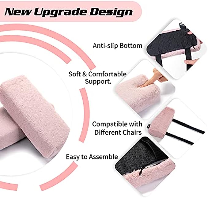 Kakieagle Armrest Pad Memory Foam Chair Armrest Cushion, Comfortable Home Office Game Chair Cushion, Adjustable and Washable Elbow Support Decompression (2 Packs)(Pink)