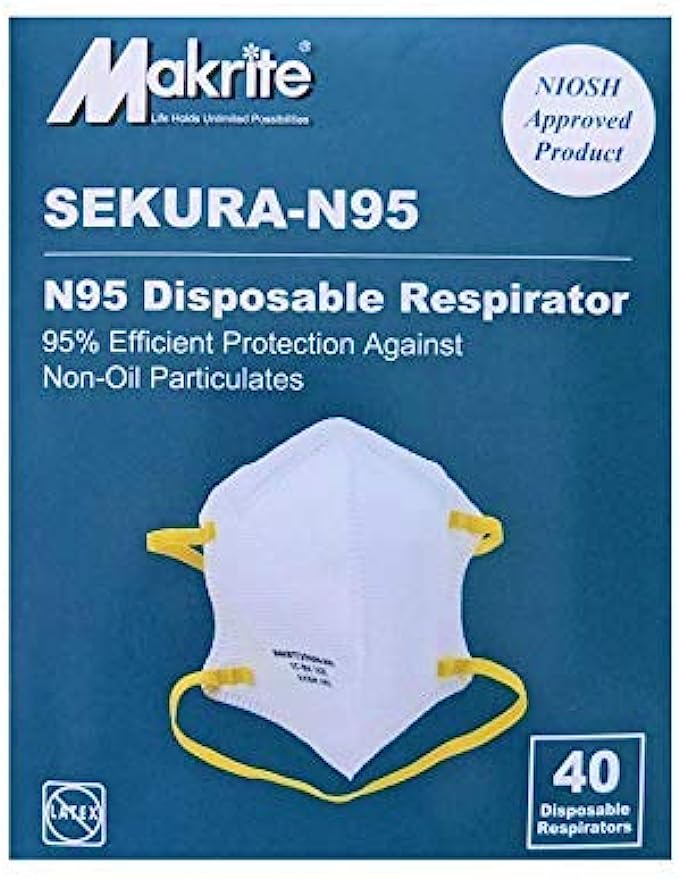 • USE FOR—Medical Setting Personal Protection, Construction, Home Improvement, Cleaning, Mowing, Gardening, and DIY Projects; 40-PACK of M/L Size Individual Makrite SEKURA-N95 Respirator Masks