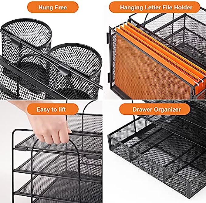• 【High Quality】The mesh desk file organizer is made of lightweight durable metal mesh and reinforced with a solid steel frame that makes it have long-lasting strength and reliable performance