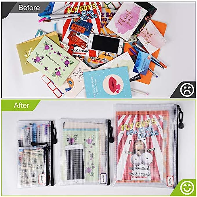 • 【Wide Application】Can be used as a perfect gift for company employee, students, teachers, travelers and people who need it. What's more, perfect for store office supplies, like papers, envelopes, board game, puzzles etc. also can use in home, travel and organizing. But, NOT suggest some shape objects, like scissors, etc. which will pierce the zipper bags.