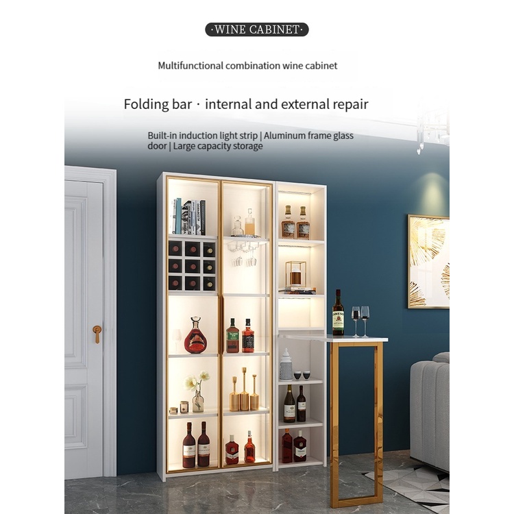 Modern and Simple Wall-Mounted Wine CabinetGlass Display Cabinet, Light Luxury Storage Cabinet Foldable Bar Counter