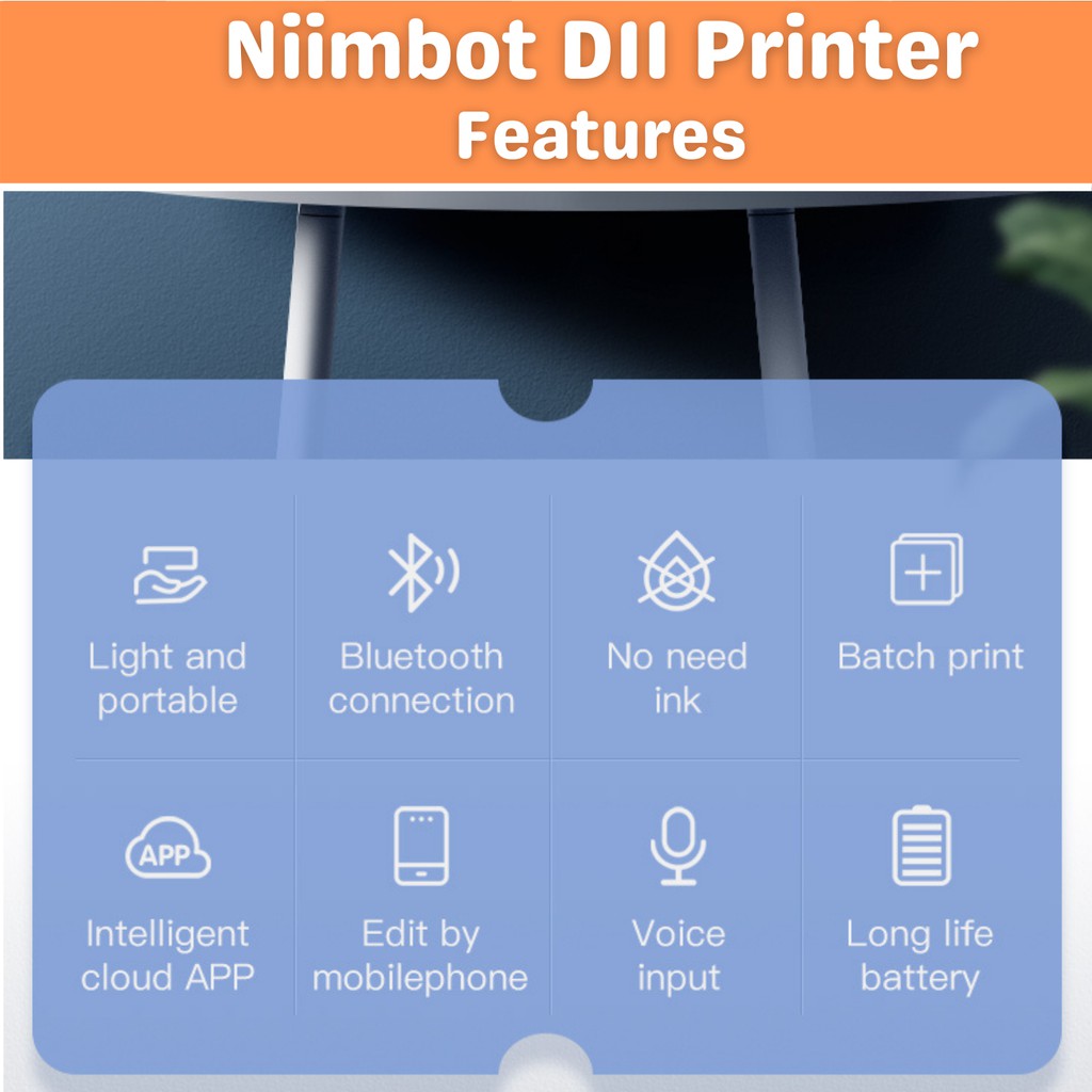 Niimbot Portable Bluetooth Thermal Label Printer Sticker Maker D11 Series + White Sticker Roll