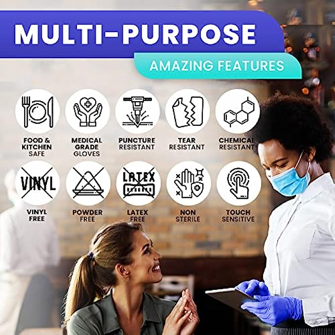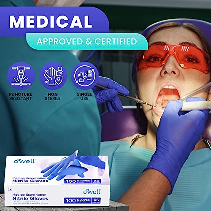 Imported Pull On closure BEST DISPOSABLE GLOVES? OWELL nitrile gloves are made of 100% premium medical-grade, and food-safe nitrile materials. These high-quality and perfectly balanced nitrile gloves are super-strong, 4mil thick, chemical, tear, and puncture-resistant. They offer incredible stretch and durability, are ambidextrous, latex-free, powder-free, vinyl-free and finger textured providing a safe and secure grip with every use. EXTREMELY COMFORTABLE: OWELL disposable gloves X-Small won’t slide around loosely or restrict blood flow and has incredible elasticity. OWELL latex free disposable gloves are the preferred nitrile rubber gloves by many health care providers due to the allergies associated with latex gloves. OWELL gloves are silky smooth to the touch, no tearing or pinching, with smooth-finished beaded cuffs. Our disposable rubber gloves are for all-day, everyday use, for professionals and individuals alike. BARE HAND & TOUCH SENSITIVE: Do you take off your gloves for every chore that requires finger sensitivity? OWELL X-Small disposable gloves are supper comfortable with bare hand sensitivity. Our powder free, viny free and latex free gloves are touchscreen sensitive and electronics user-friendly and are comfortable to wear for extended periods of time. Now you can make those reminders on your smart device without taking off your disposable gloves. MEDICAL GLOVES: OWELL nitrile examination gloves are certified, compliant, and approved for medical use. OWELL medical exam gloves are non latex, non sterile, single-use only, chemical & puncture resistant and are the go-to choice gloves disposable latex free X-Small for doctors, nurses, physicians, first responders, pharmacists, labs, clinics, and health care providers. FOOD & KITCHEN GLOVES: Are your current disposable cooking gloves food safe? Protect yourself and those around you from ingesting some of the harsh and toxic chemicals found in non-safe food prep gloves. Our medical-grade non latex food service gloves are not only chemical safe, but they are also tear and puncture-resistant, protecting your hands from transmitting food-related bacteria while handling raw & unprocessed foods. OUR FOREVER GUARANTEE! OWELL Health is committed to providing the highest quality health & wellness products and best in class customer service & product support. When purchasing an OWELL branded product, you can rest assured that your product was manufactured to the highest quality and safety standards and is backed by our money back guarantee policy (within 90 days of purchase).Should you need any assistance with your purchase, please call or email our live customer support team.