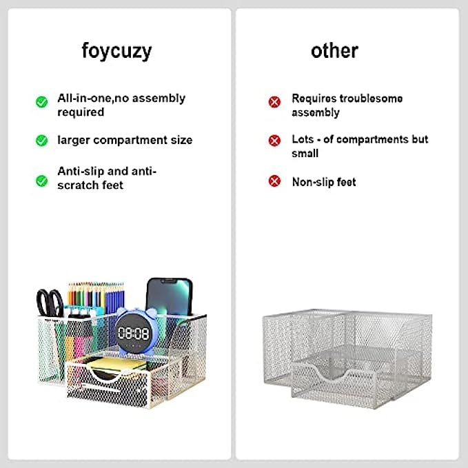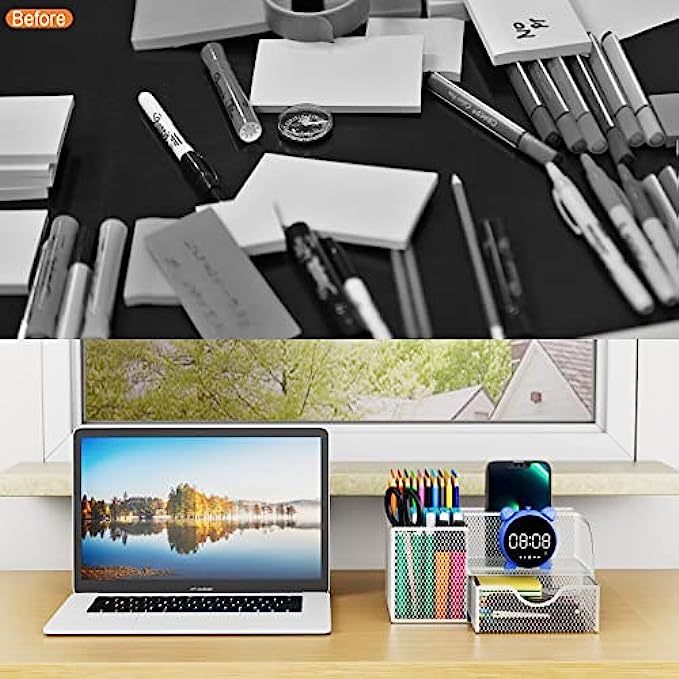 • 【STYLISH MESH DESK ORGANIZER DESIGN】We use superior modern technology to make the construction of office supplies desk organizers much sturdier and more durable. The reliable, high-quality metal mesh design looks more elegant than other mesh or plastic office supplies organizers. There are four non-slip pads on the bottom of the office organizer to protect your desk from scratches