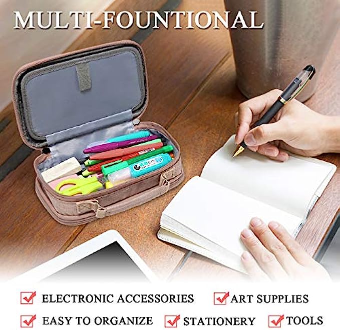 ✎DURABLE&PRACTIAL:Large wide open pockets for easy storing.Sturdy and smooth SBS zippers allow the pen case easy to open and close.In addition to holding lots of your everyday writing tools, the pencil case keeps them organized.