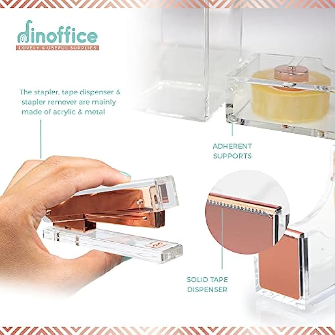 • Packing Made Easy - Secure items with the chic rose gold tape dispenser and transparent sticky tape.