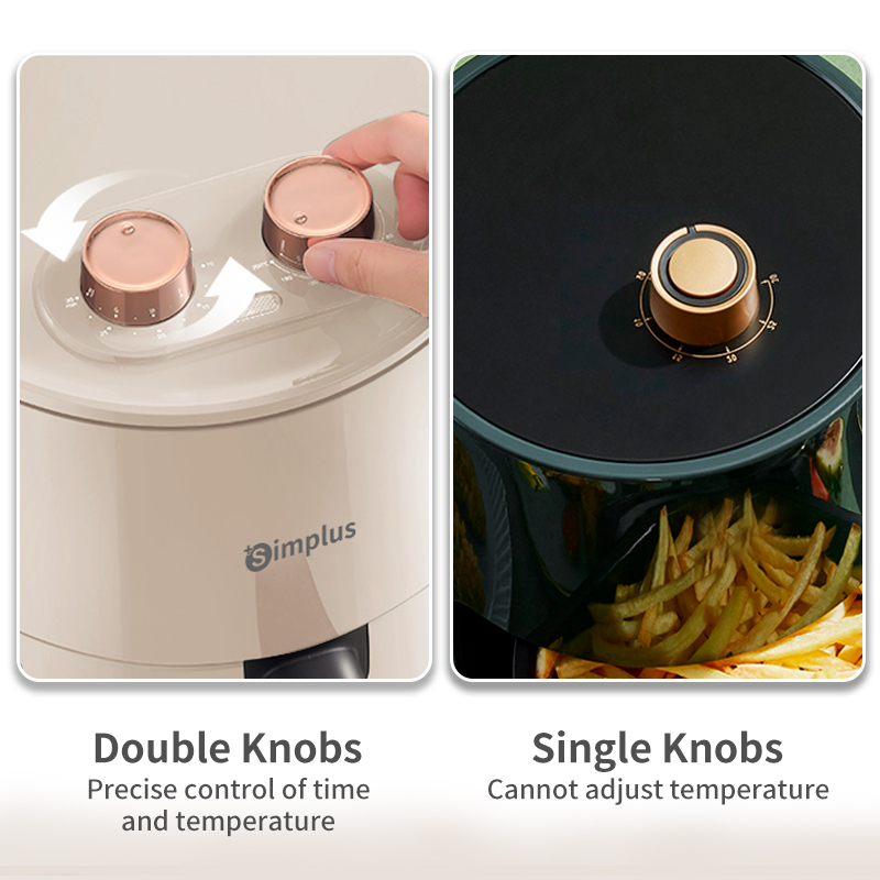 Simplus Air Fryer 4L Mini Knob Control 1300W 30min Preset Timer 80-200℃ Temperature Control