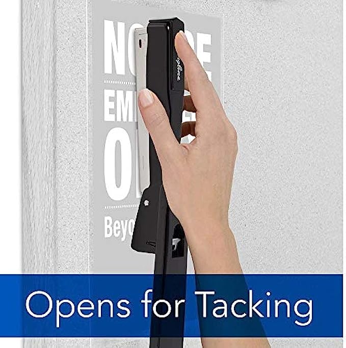 • TACKING & PINNING – Tack papers to bulletin boards with ease: unlatch the stapler and you're ready. The stapler can also produce pointed staples for temporary pinning: just reverse the anvil.