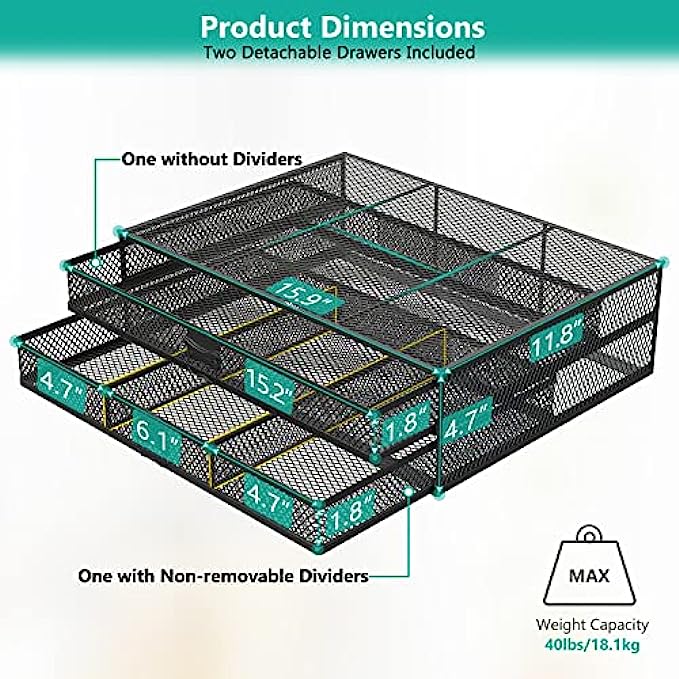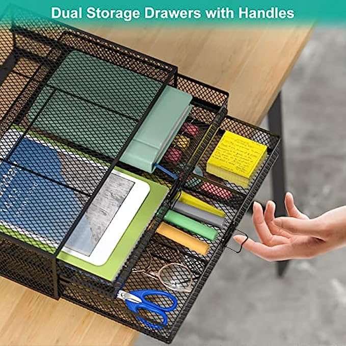 • Extra Storage: 2 removable drawers add extra storage space underneath for small office supplies: pens, documents, notebooks, etc.