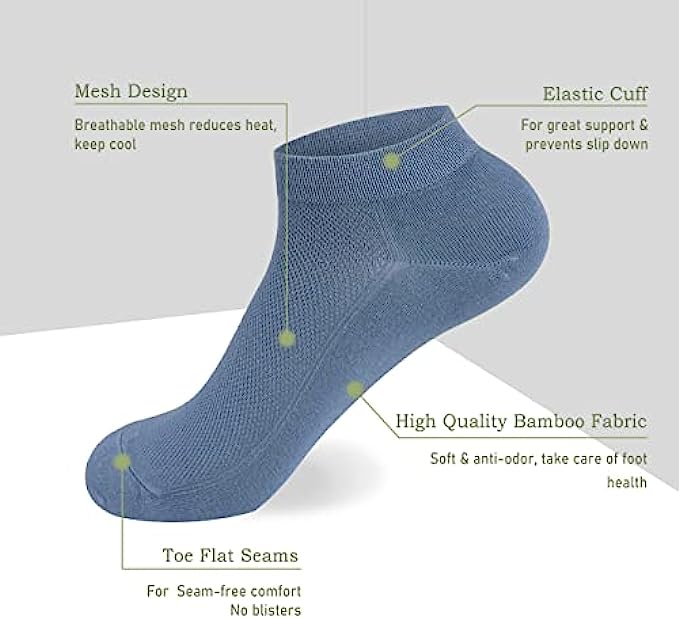 90% Natural Fiber From Bamboo,10% Spandex Imported Machine Wash Bamboo fiber fabric is light and soft, comfortable to wear.Natural plant fiber, adding a force to environmental protection! Breathable mesh ventilation and moisture management keep feet cool and comfortable. The smooth toe seam construction eliminates bulky seams to reduce fraying and prevent blisters. M size should fit no problem for shoes size 4 to 8. L size fit for 8 to 11. Ultra thin and lightweight bamboo fiber fabric provides good moisture circulation, which is good for perspiration without stuffy feet and reduces odor. The natural antibacterial ingredients in bamboo have the characteristics of natural antibacterial, anti-mite and anti-odor. Soft and skin-friendly, suitable for running, fitness, home and other occasions, from sports leisure to work. Retains its original shape after multiple washes and is machine washable. Bamboo fibril is a brand-new natural fiber, which is obtained by combining physical and chemical methods.Environmental protection and health coexist !