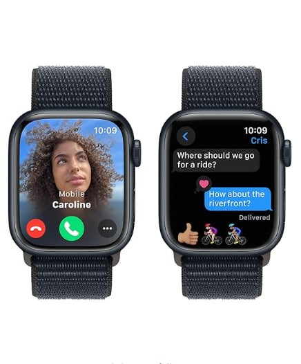 STAY CONNECTED — Send a text, take a call, listen to music and podcasts, use Siri, and get notifications on the go. Apple Watch Series 9 (GPS) works with your iPhone or Wi-Fi to keep you connected.