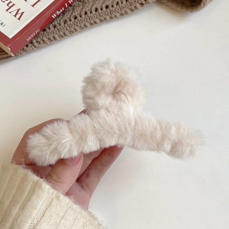 Autumn Winter Furry Grab Clip Back Head Plate Hair Clip Headdress Elegant Temperament French Shark Clip Plush Hair Clip
