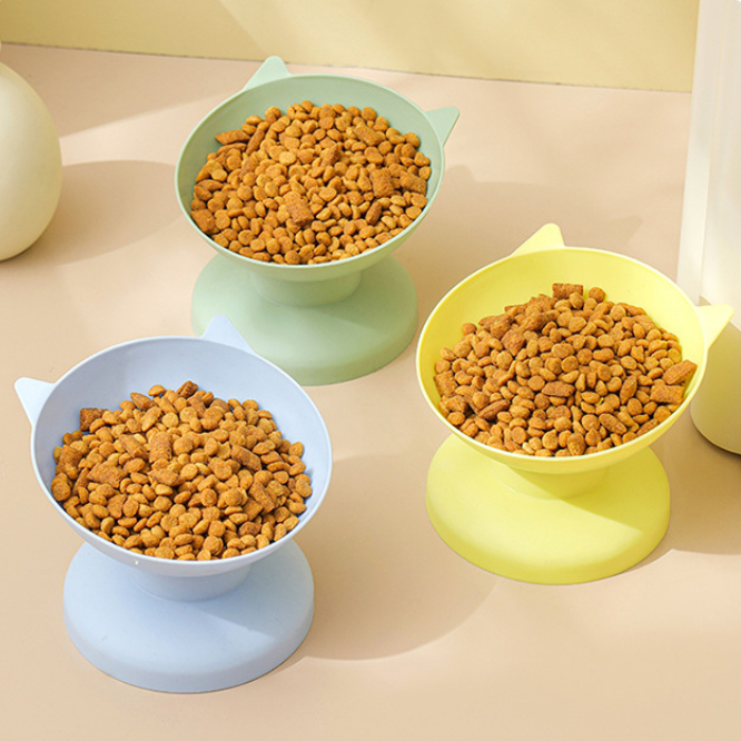 Cat Bowl High-Foot Bowl Kitten Special Neck Protection Firm Anti-Overturning Plastic Bowl Candy Color Cat Food Dog Food Bowl