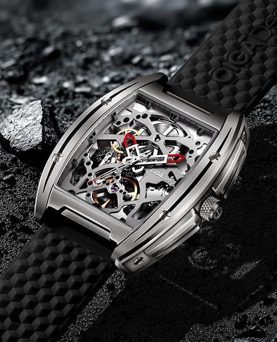 CIGA Design Skeleton Watch Z Series Titanium Automatic Mechanical Wristwatch Sapphire Tonneau Analog Men's Watches 3ATM Waterproof with Removable Silicone and Leather Strap Unisex Steampunk Gift