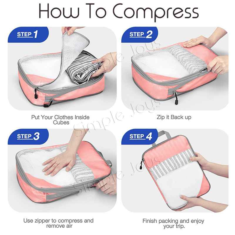 Compression Packing Cube Bags for Travel 3 pcs Set Space Saving Luggage Storage Organizer
