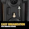 • Convenient onboard accessory storage. Heavy-duty rubber feet help reduce walking when in use ideal for a car pump, bike pump and digital tire inflator