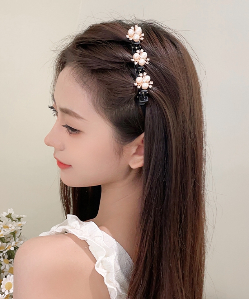 Elegant Temperament Double-Layer Braided Hair Clip Broken Hair Forehead Bangs Tidy-up Handy Tool Butterfly Pearl Side