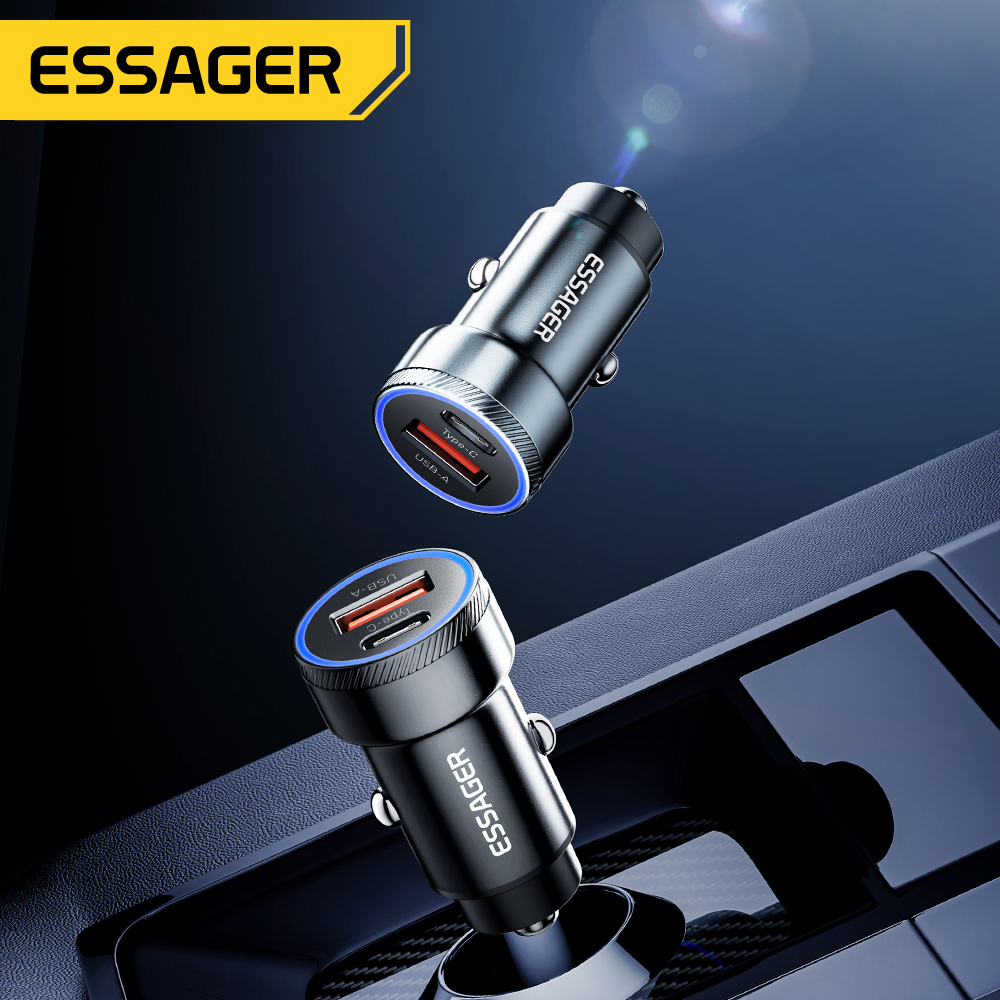 Essager 54W LED Usb Type C Car Charger PD QC 3.0 Fsat Charging For samsung IP Phone 12-24V car charger