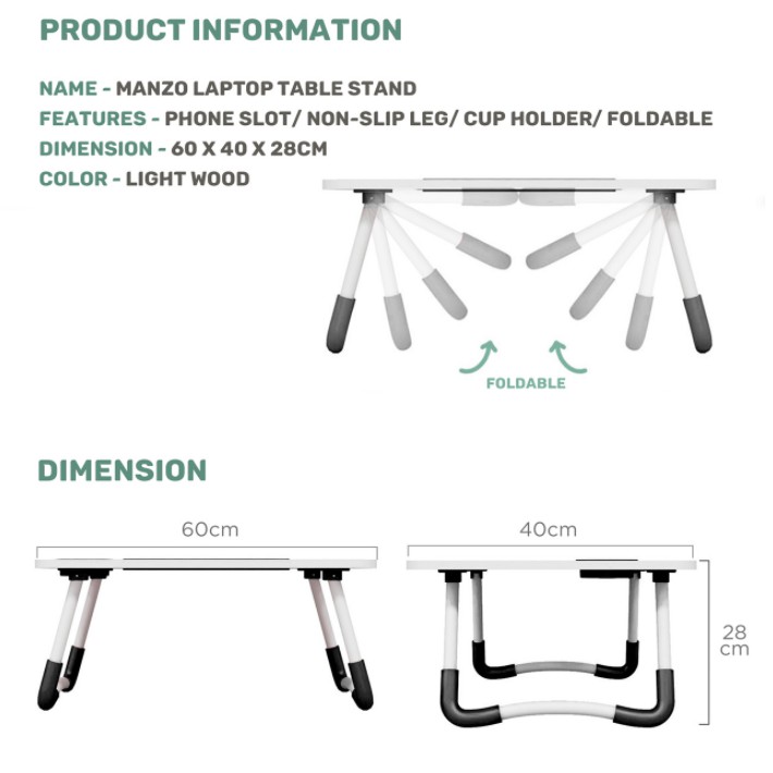 Nice product, well packed and good quality. Strong and durable. Low height and can be used on bed also To work. Portable and foldable. Light weight.