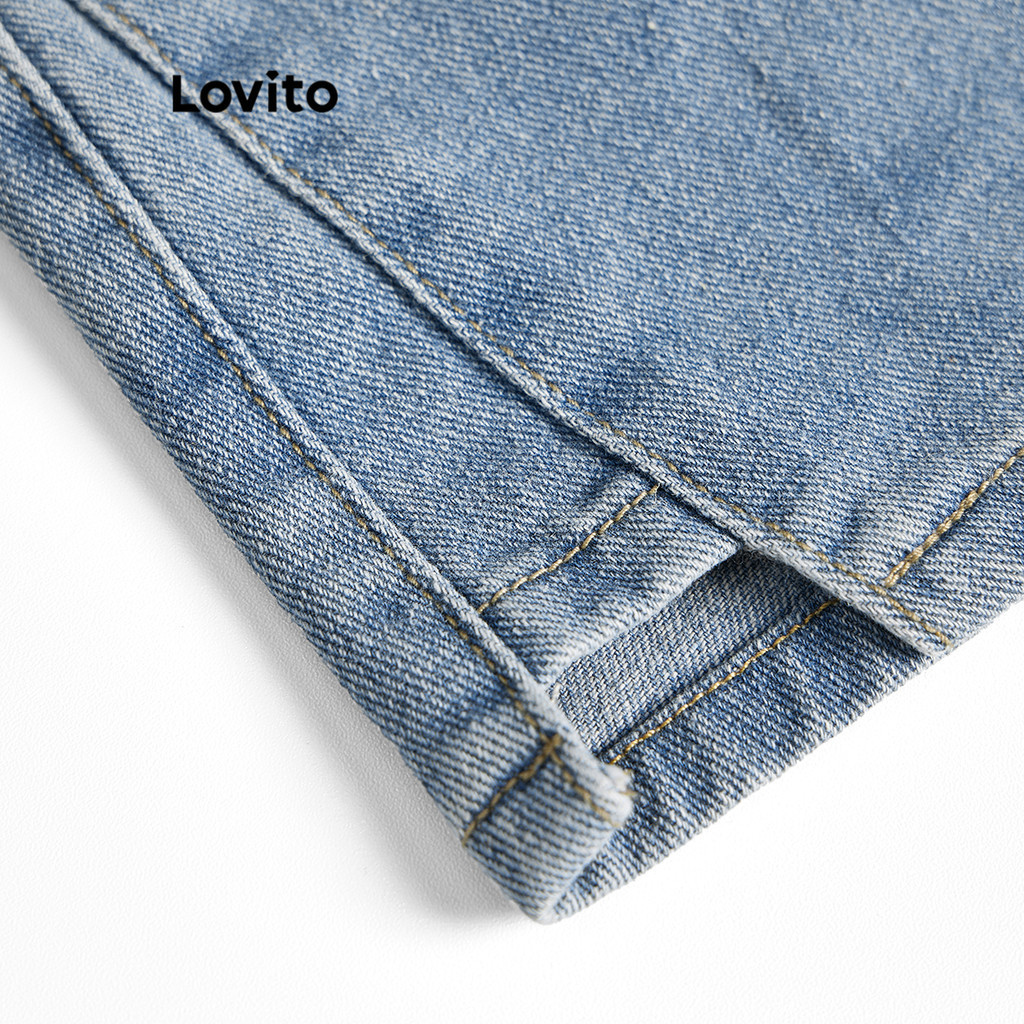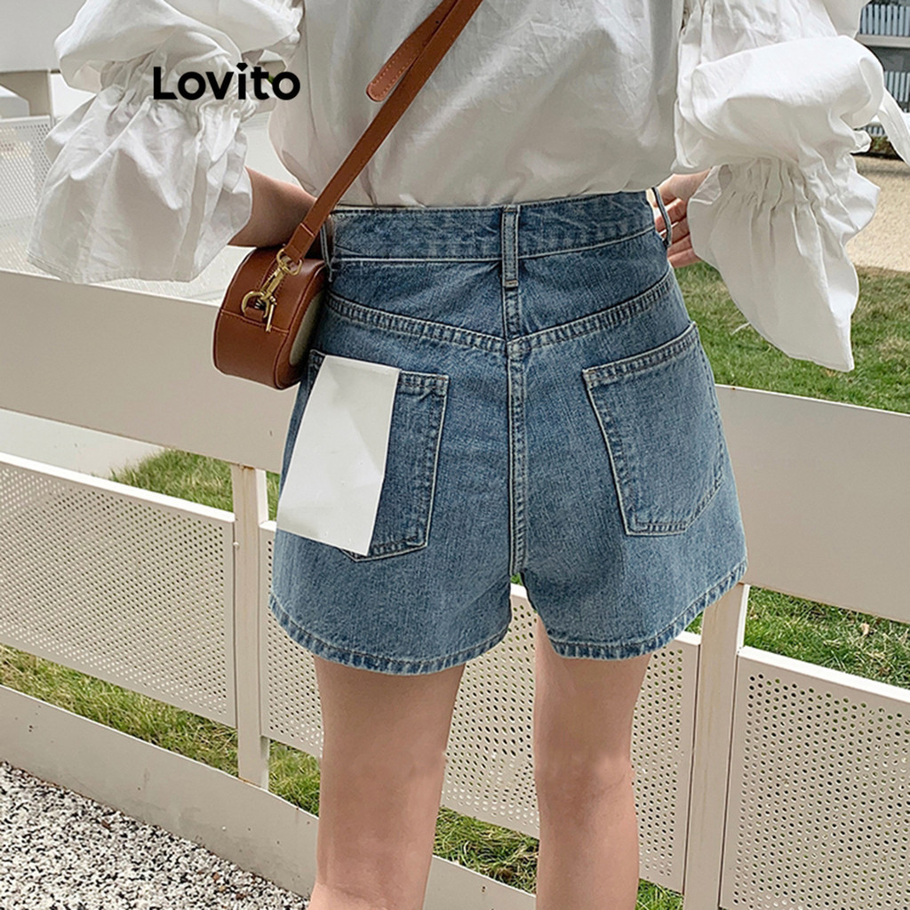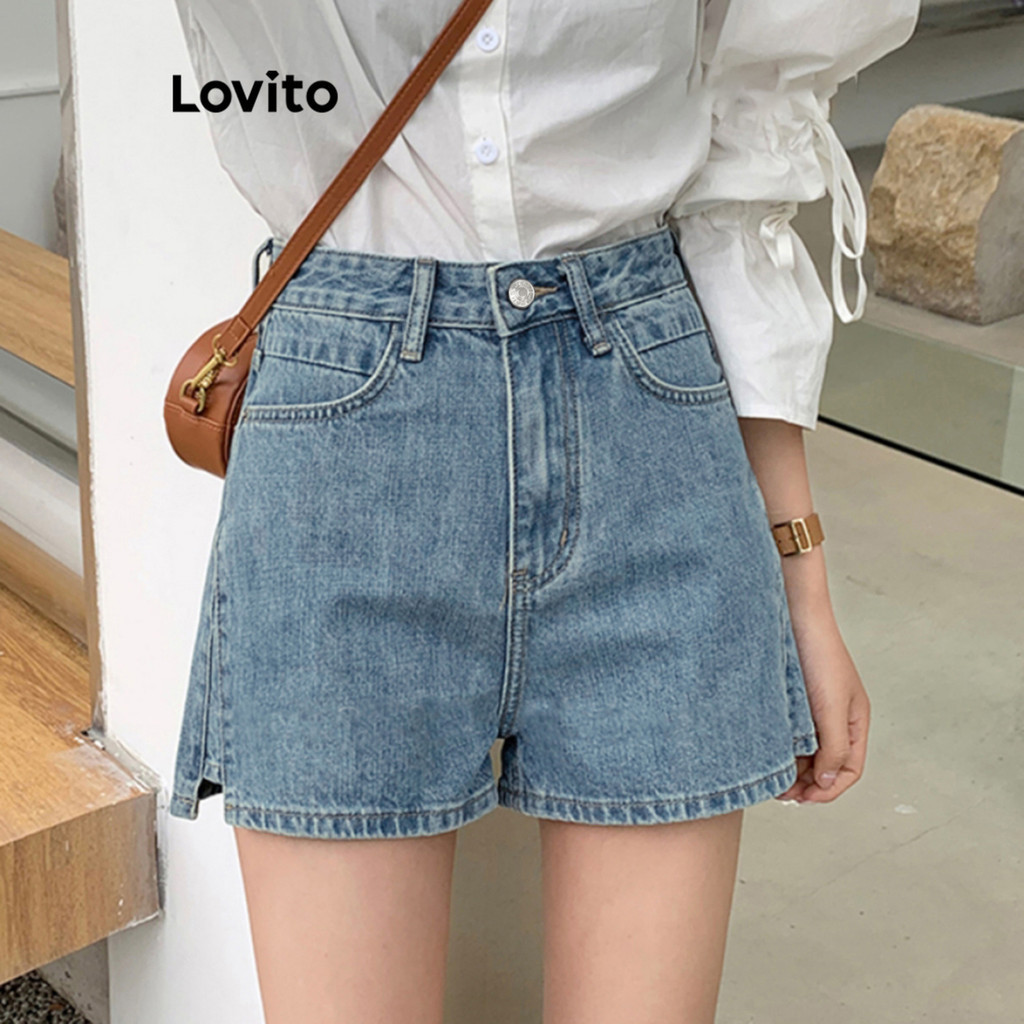 Lovito Casual Plain Split Pocket Denim Shorts for Women L68ED114 (Multi-color)