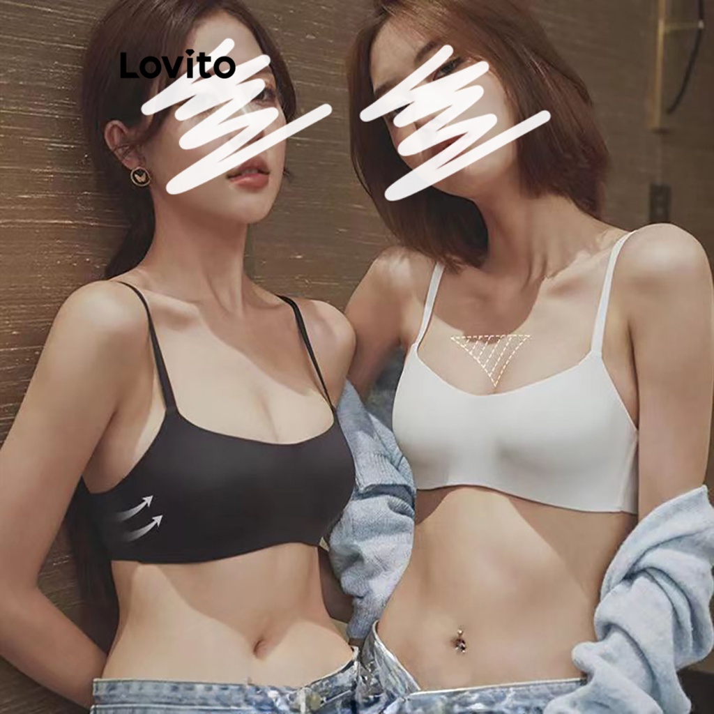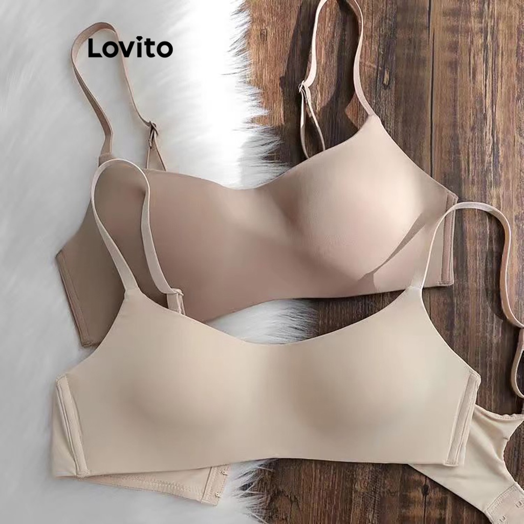Lovito Casual Plain Structure Line Elastic Waisted Bra for Women LNE31266 (Apricot/Brown/White/Black)