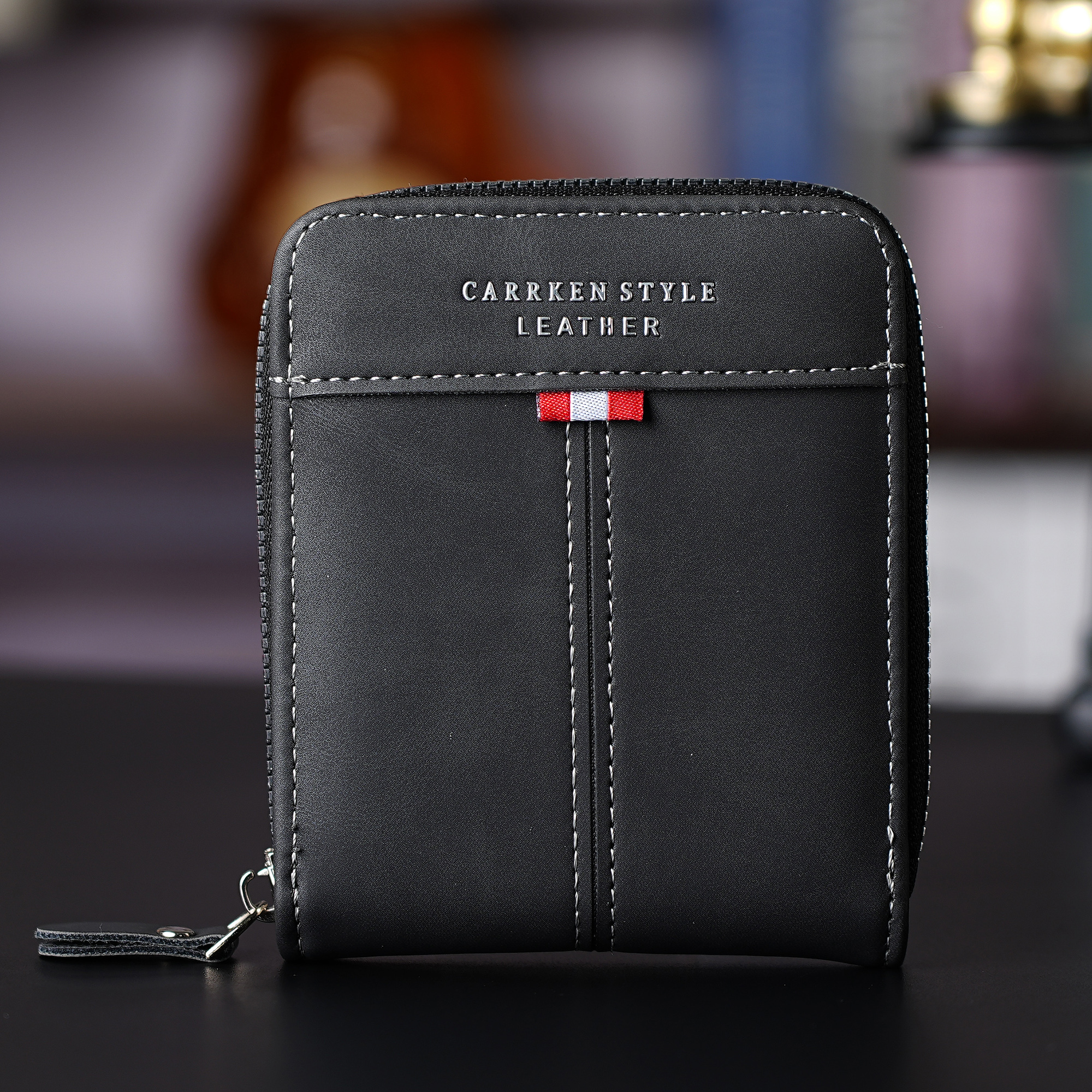 Men New Style Leather Zipper Short Wallet Multifunctional Coin Purse Multi-card ID Bag Card Holder