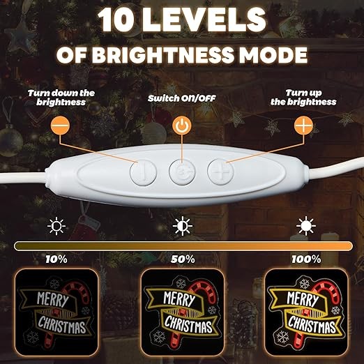 • 【Dimmable & USB-Powered Convenience】This dimmable christmas neon sign comes with 10 adjustable brightness levels—customize the glow from soft warmth for quiet nights to bright vibrancy for festive parties. As a USB powered christmas neon sign, it easily plugs into laptops, power banks, or wall adapters, offering flexible placement no matter your space.
