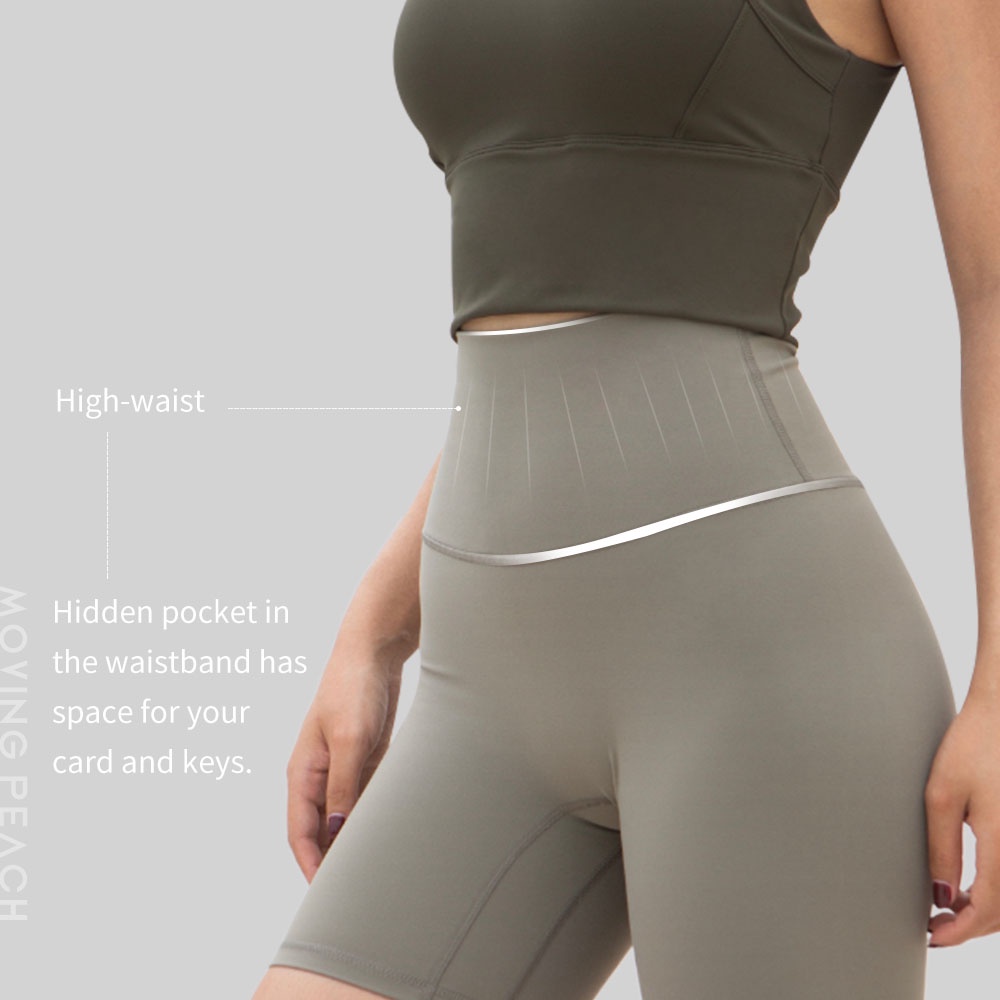 MOVING PEACH Women Sports Shorts Biker Shorts High waist Yoga Training Bottom BPD