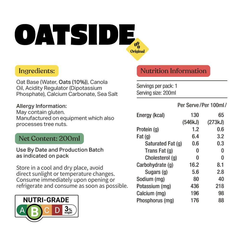 OATSIDE Barista Blend Original Oat Milk 24x200ml w straw- Dairy Free, Creamy, Zero Added Sugar