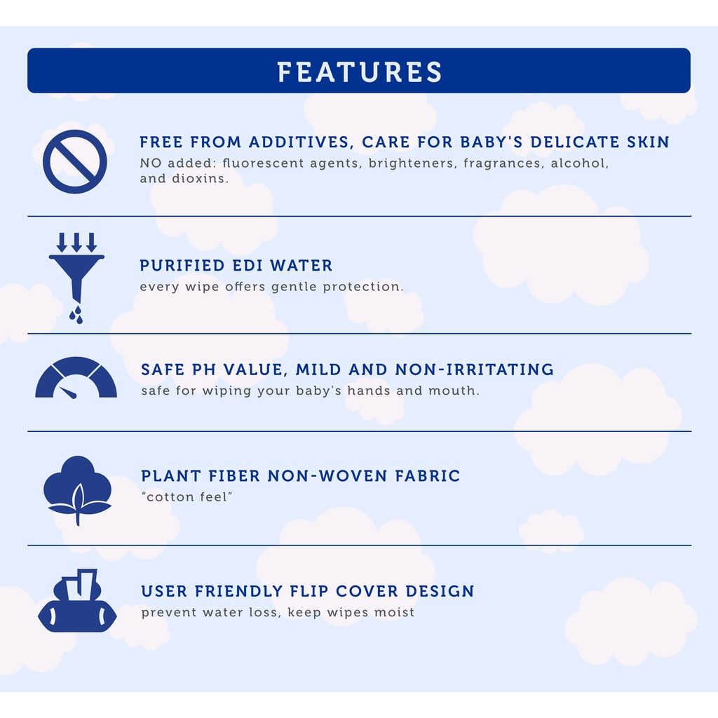 Pro Family Wet Wipes [Natural Care Sensitive Baby Wipes][Pack in 4 packets*60s/bag][240sheets][Safe & Multi purposes]