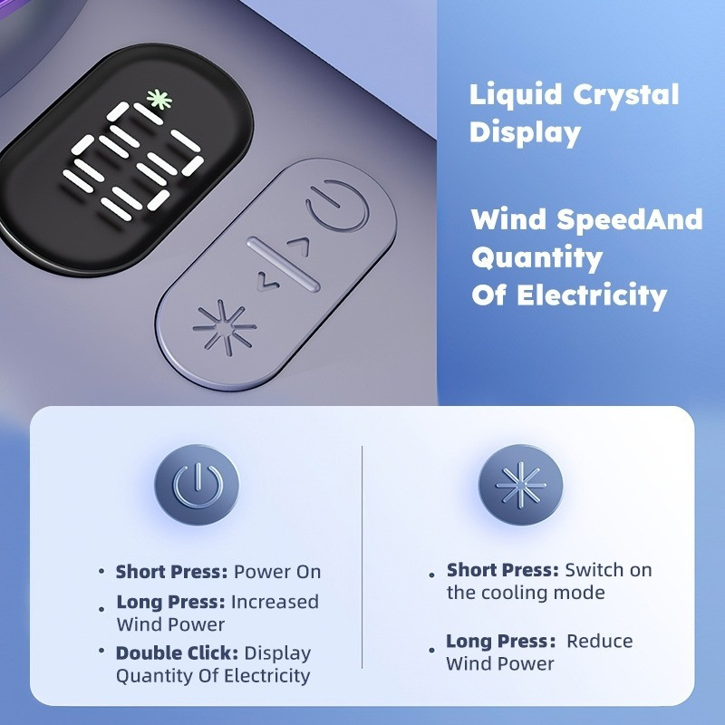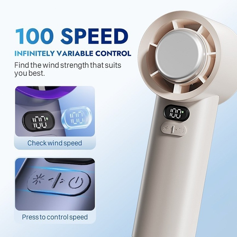 SG Local- Mini Handheld Outdoor High Speed Air Cooling Fan 100-Gear Wind Speed Digital Display Adjustable Turbo Fan
