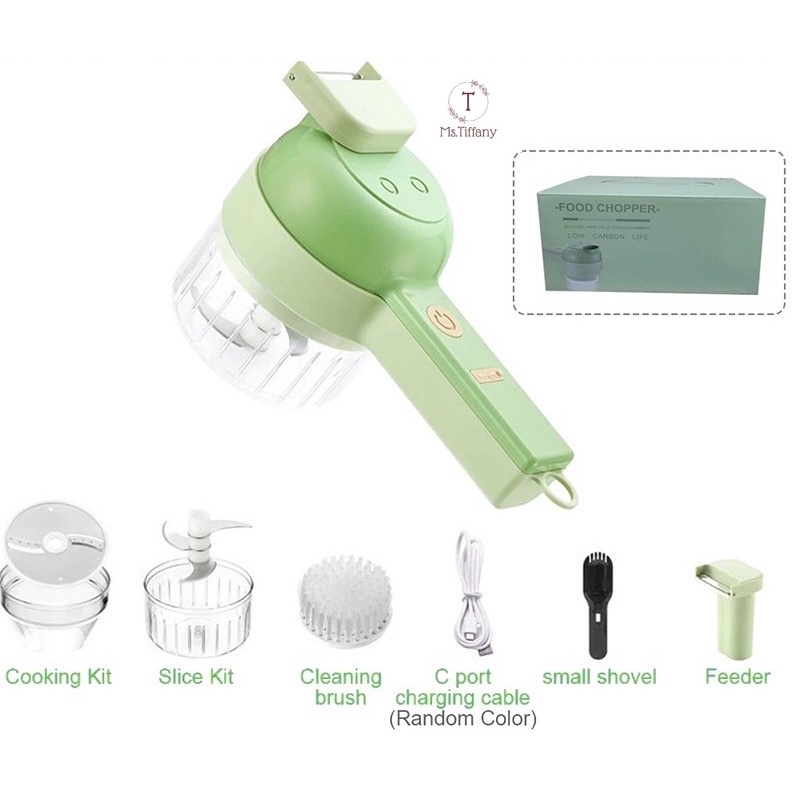[SG Stock] 4 IN 1 Portable Electric Slicer /Masher /Garlic Chopper With Peel Function