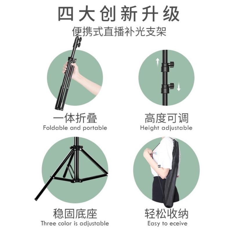 (SG Stock) Tripod Stand 210cm Portable Adjustable Stand Live Camera Selfie Tripod and Bluetooth Phone Holder 2.1m手机三脚架支架