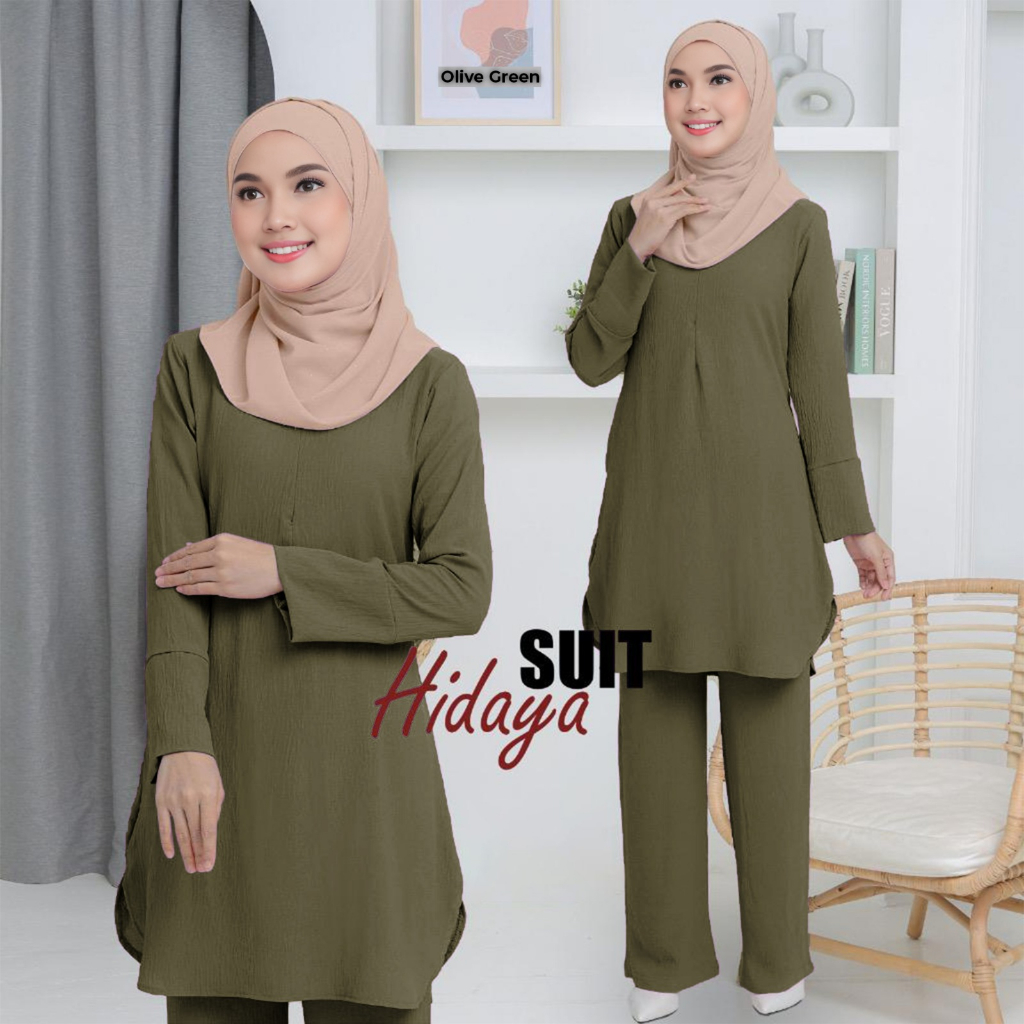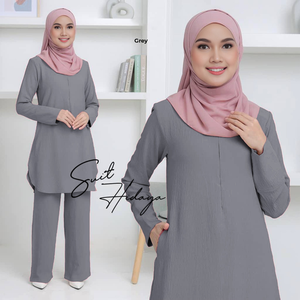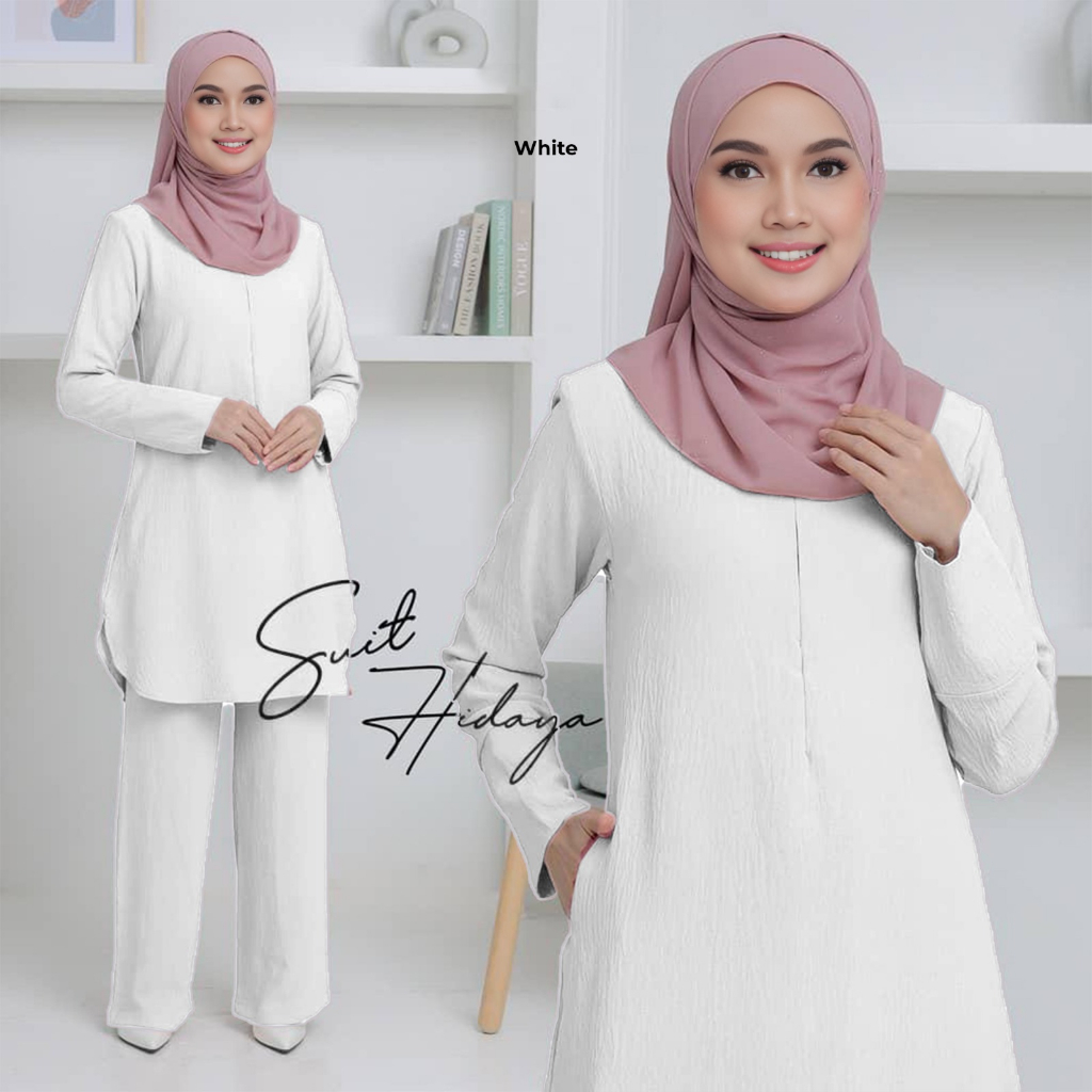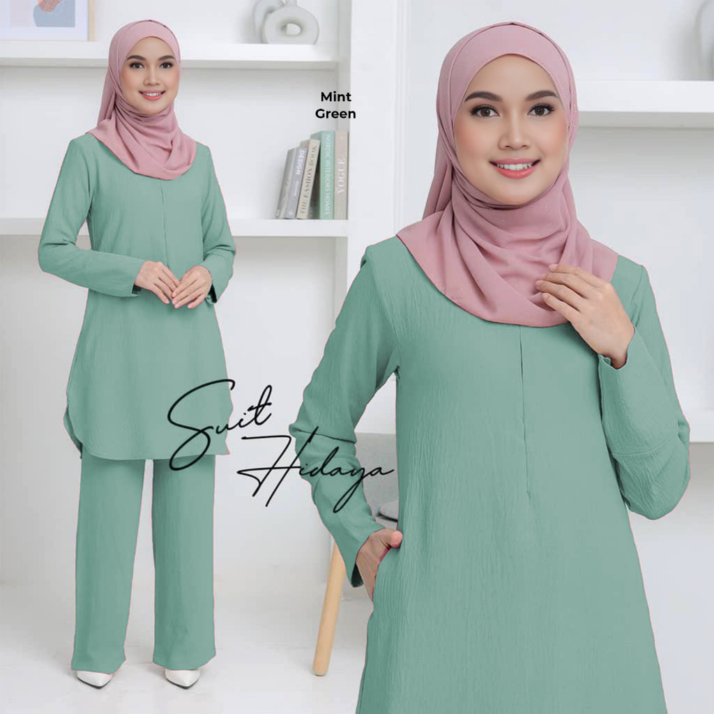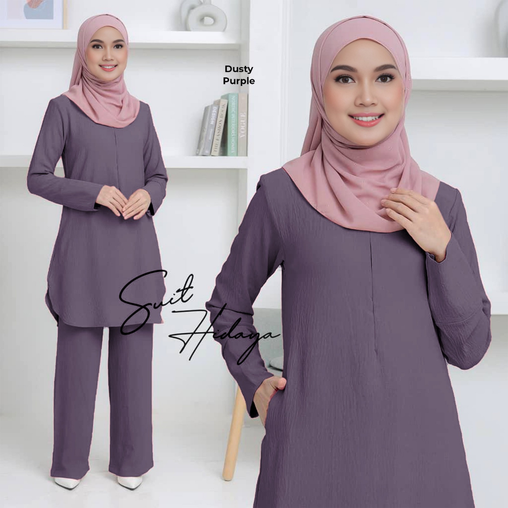 SUIT HIDAYAH IRONLESS SET WARDA PLUS SIZE BLOUSE BERPOCKET (S-2XL) BF & WUDHUK FRIENDLY, LONG BLOUSE AND PANTS SET