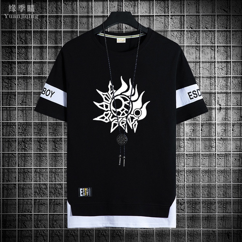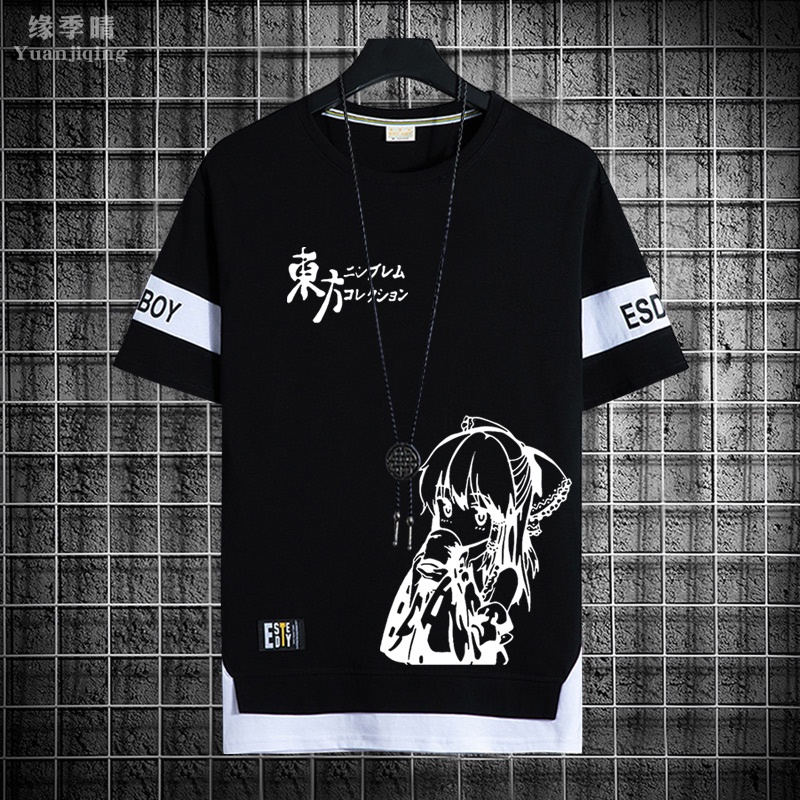 Summer Fashion New Men's and Women's Universal Round Neck Short Sleeve T-shirt Japanese Animation Design Print Men's Oversized Shirt Men's Loose Graphic T-shirt Women's Black Tee