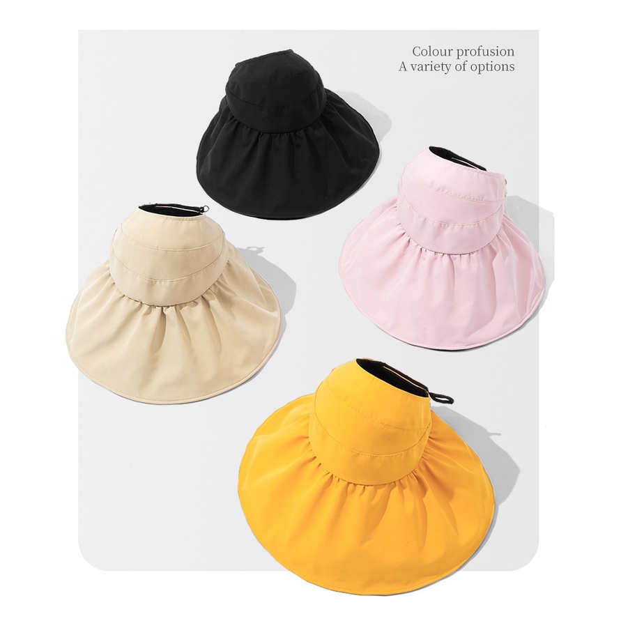 Summer Women Big Brim Foldable Sunhat Vinyl Layer Empty Top Hat Fashion Outdoor Sun Protection Sunscreen Hats